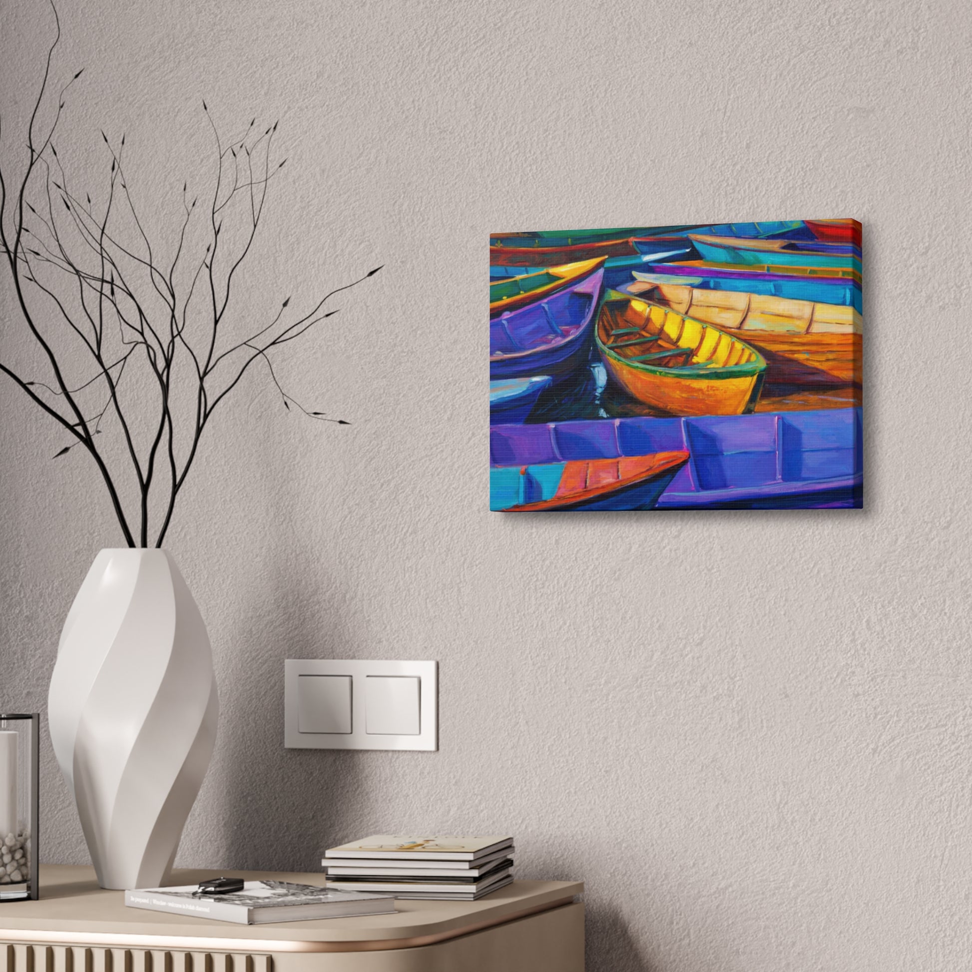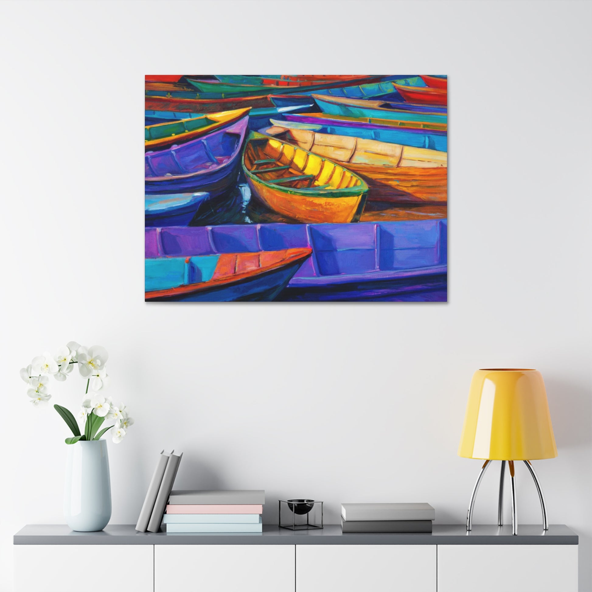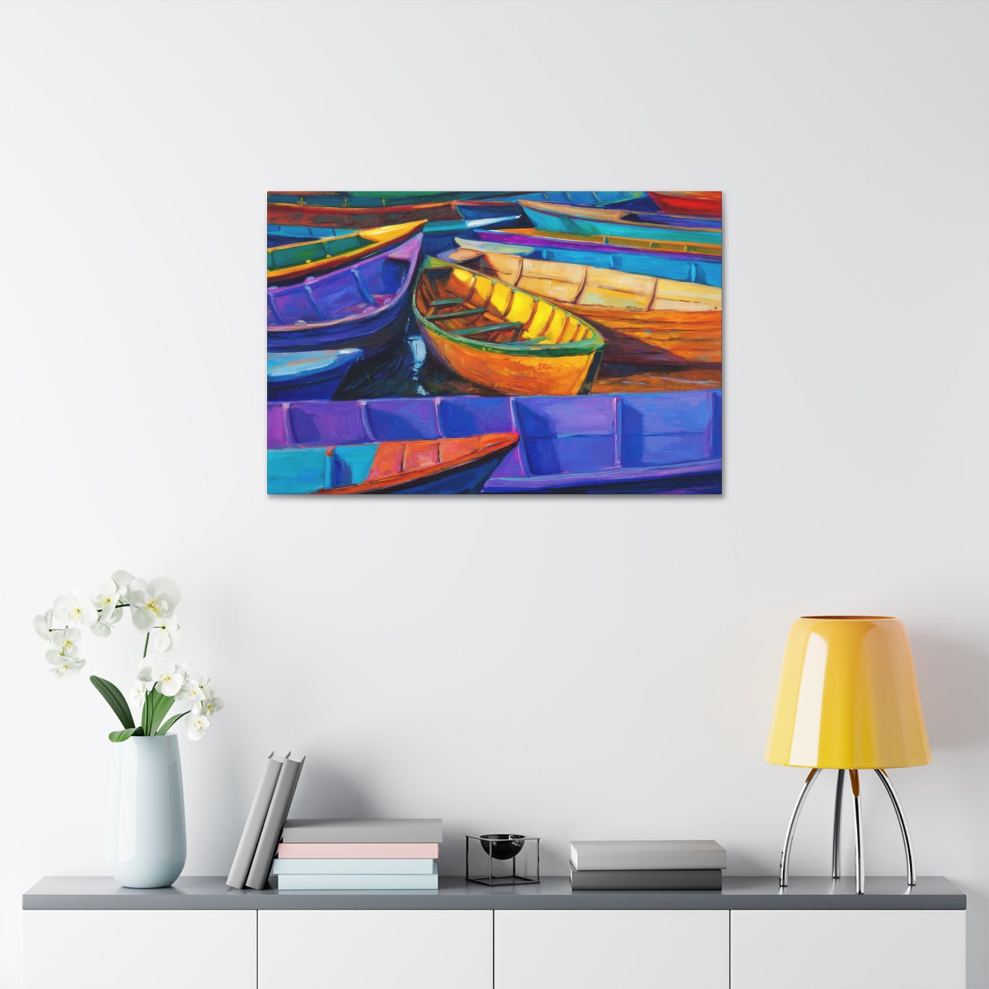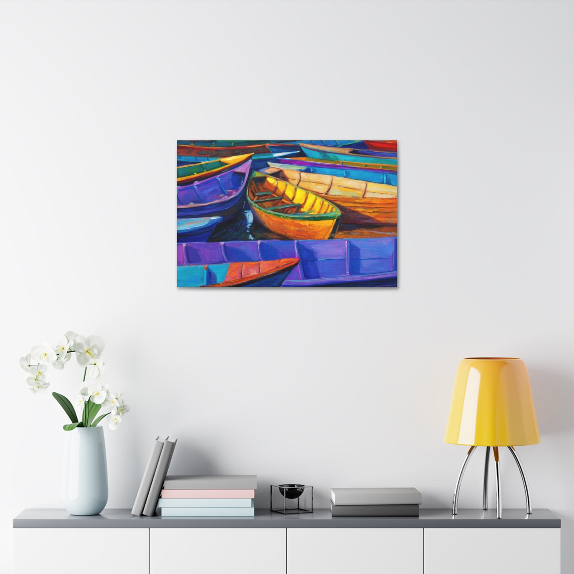Experience the camaraderie of the sea with "Elevated Drift: Rafting Up the Tides." This artwork captures a group of boats gently drifting together, symbolizing unity and shared journeys. The serene composition and harmonious colors make it a perfect addition to any nautical-themed space.