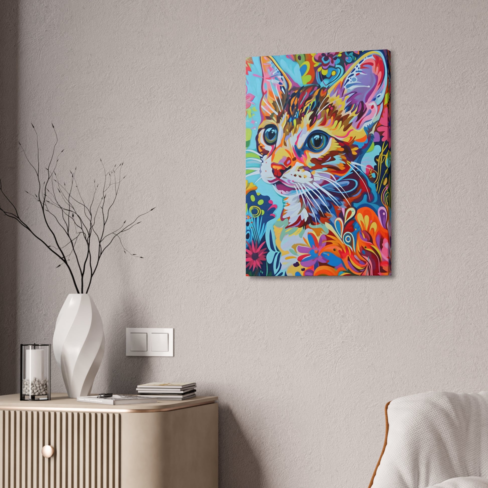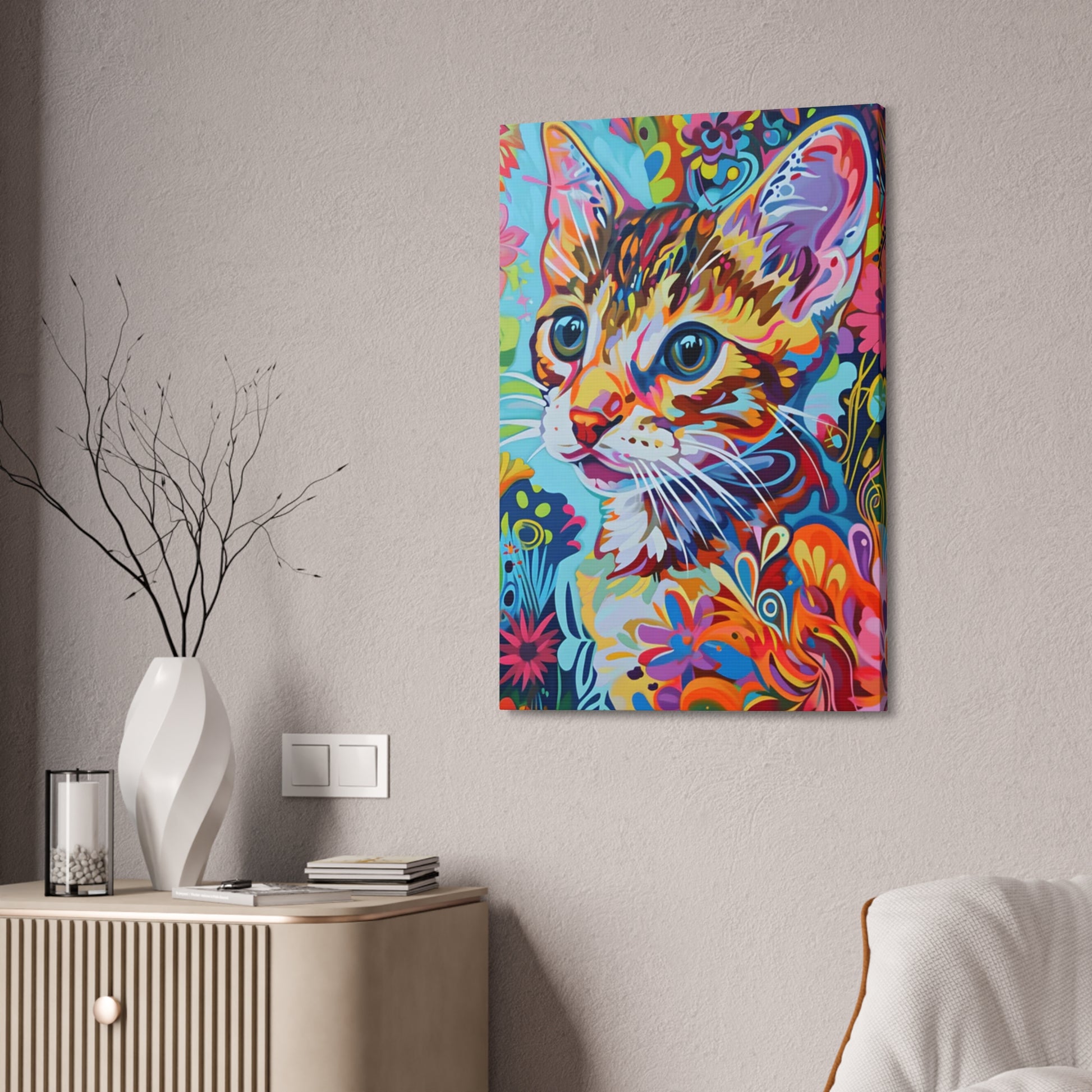 Delve into the enchanting world of 'Mystic Purr,' where a fantastical feline is portrayed amidst a dreamlike setting. This artwork captures the allure and mystery of cats, blending reality with fantasy to create a mesmerizing piece that captivates the imagination.