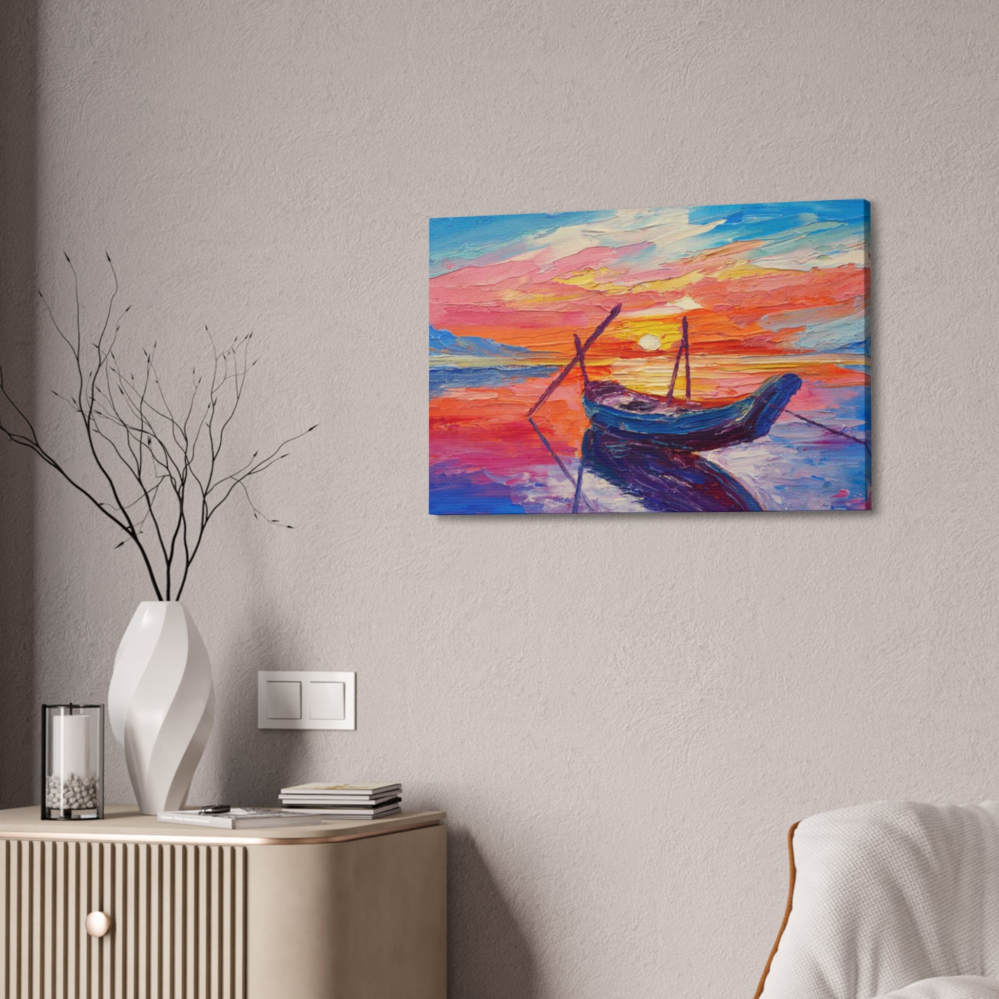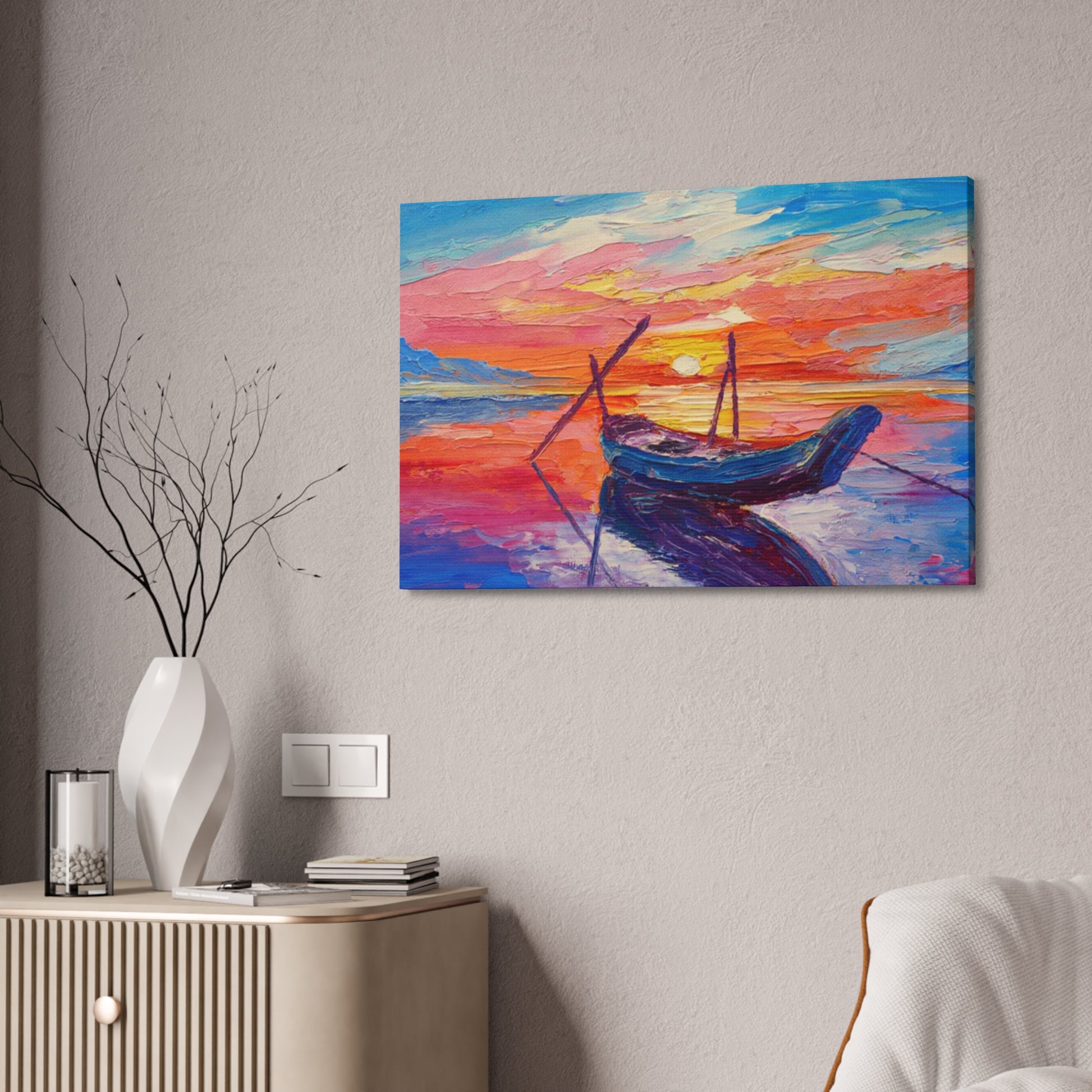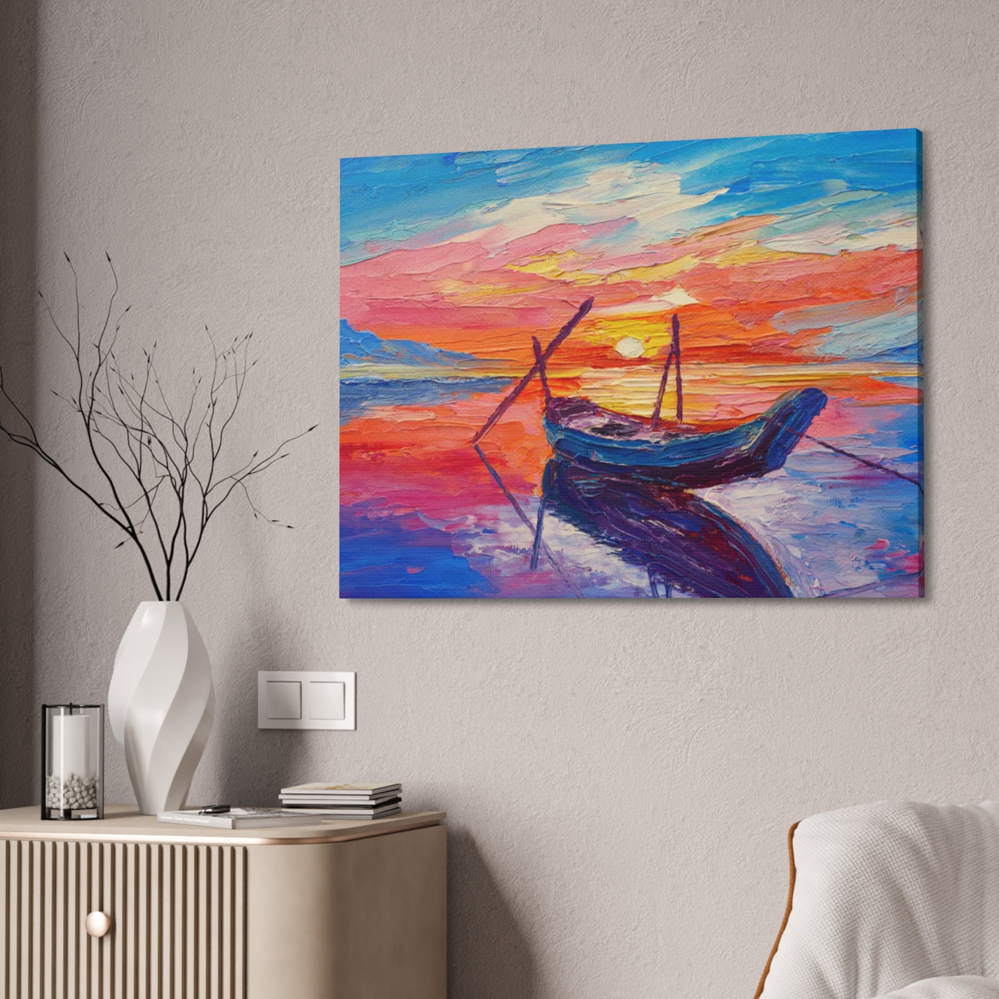 Care instructions: If the canvas does gather any dust, you may wipe it off gently with a clean, damp cloth.